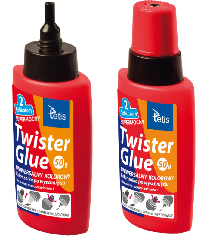 Klej wyposażony w 2 aplikatory: do precyzyjnego dozowania oraz do dużych powierzchni.