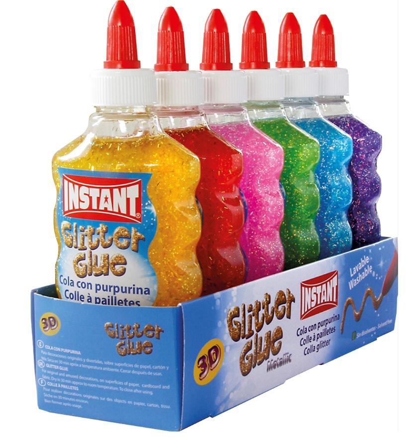 Klej z brokatem w płaskiej butelce 180g (6 różnych kolorów) klej z efektem 3D przestrzennym. Możliwość nałożenia na różnych powierzchniach. Po wyschnięciu tworzy wzory wg kreacji twócy. Produkt zgodny z wszystkimii nomami EU. Nadający się do tworzenia SLIM-ów. 6 sztuk w różnych kolorach w opakowaniu zbiorczym.