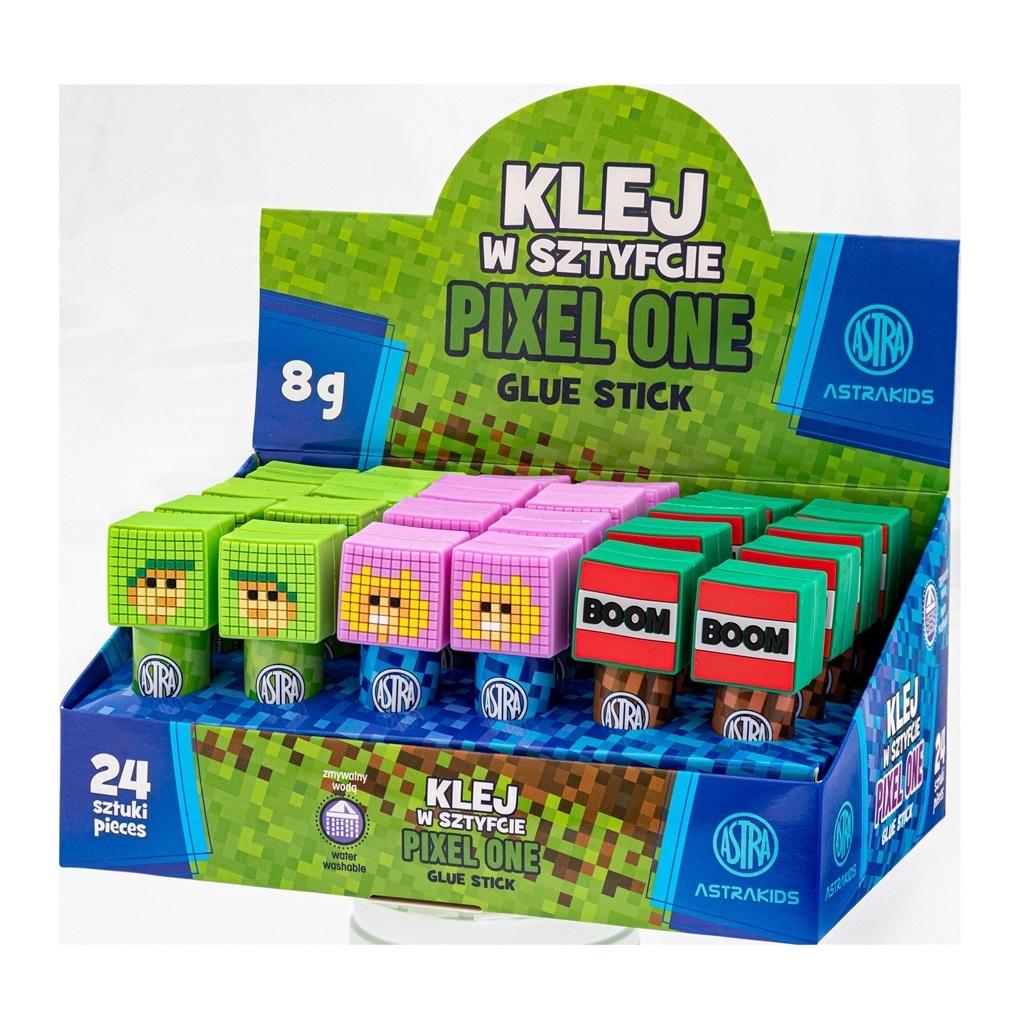 Klej w sztyfcie z nakładkami 3D Pixel Astra 8 g PVP. Opakowanie zbiorcze zawiera 24 sztuki.