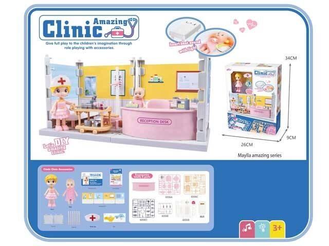 Klinika lekarska dla małej laleczki. Produkt nie potrzebuje baterii. Zabawka przeznaczona dla dzieci powyżej 3 roku życia.