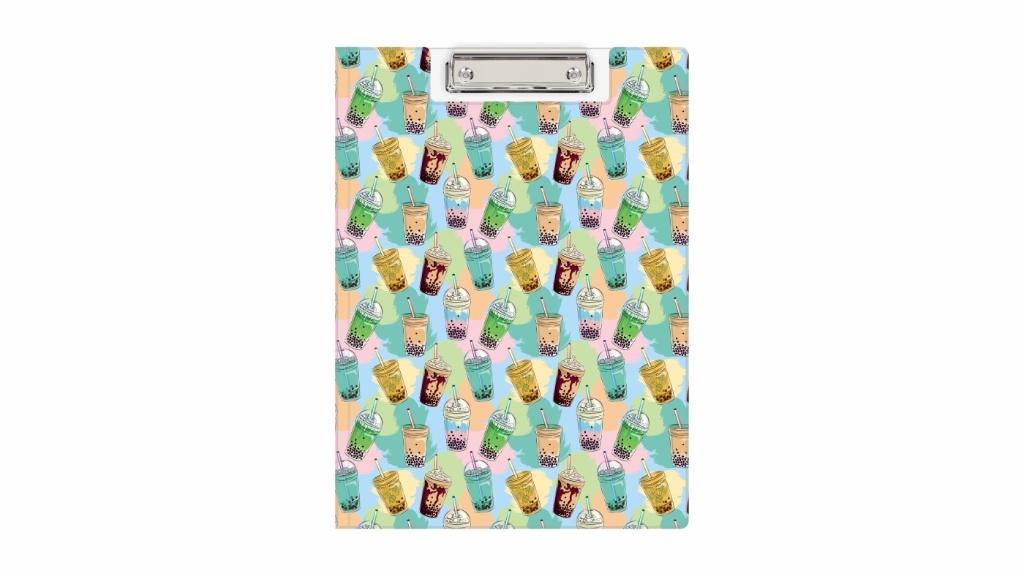 Wykonana z folii PVC z pełnym, ozdobnym nadrukiem, wewnątrz usztywniona tekturą. Wyposażona w sprężysty mechanizm zaciskowy służący do przytrzymywania kartek papieru. Wewnątrz, na całej szerokości, podłużna kieszeń z miejscem na długopis na zgięciu okładek. Wersja zamykana, z okładką. Służy jako sztywna podkładka do pisania, z funkcją teczki, podczas konferencji, spotkań, jak i codziennej pracy. Format A4.