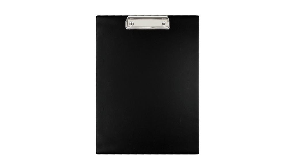 folia PVC kolorowa, środek usztywniony tekturą, sprężysty mechanizm zaciskowy służący do utrzymania kartek papieru, format A3, A4, A5 i A6; na zamówienie deska z klipem na dłuższym boku, występuje w 10 kolorach.