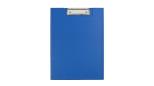 folia PVC kolorowa, środek usztywniony tekturą, sprężysty mechanizm zaciskowy służący do utrzymania kartek papieru, kieszeń na wewnętrznej stronie okładki i uchwyt na długopis, format A4, A5, występuje w 10 kolorach.