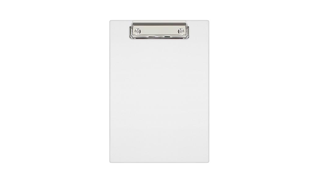 Wykonany z kolorowej folii PVC. Środek usztywniony tekturą. Wyposażony w sprężysty mechanizm zaciskowy służący do przytrzymywania kartek. Podkładka pojedyncza. Format A5.