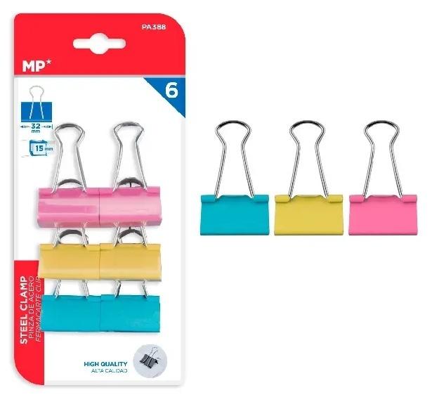 Klipsy biurowe kolorowe 6szt./opakowanie 32mm MP