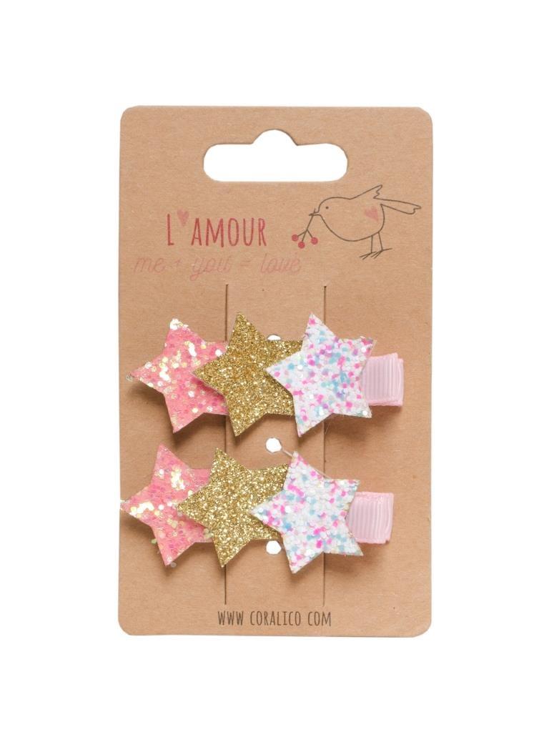 Zestaw klipsów z różnokolorowymi gwiazdkami.
