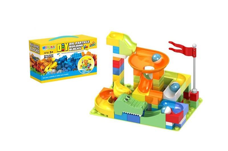 W zestawie: 120 klocków w różnych kształtach i kolorach, 1 podstawa 22,5 x 16 cm., instrukcja, wym. opk: 25 x 16,5 x 9 cm. Wiek 3+