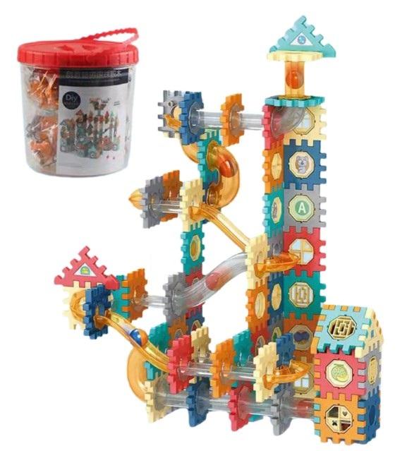 Zestaw składa się z 182 różnorodnych klocków, umożliwiających budowę najróżniejszych labiryntów i struktur, zamków. Dziecko może tworzyć skomplikowane trasy, podjazdy, mosty i wieże. Klocki zostały zaprojektowane z myślą o bezpieczeństwie dzieci. Materiały wysokiej jakości i staranna konstrukcja zapewniają solidność i trwałość zabawy.