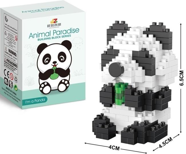Urocza Panda Zbudowana z Klocków to część serii Animal Paradise Building Block, idealna dla miłośników zwierząt i składania modeli. Zestaw pozwala na samodzielne stworzenie sympatycznego misia pandy, będącego miniaturową wersją popularnych zabawek konstrukcyjnych. Gotowa figurka ma kompaktowe wymiary: 6,5 cm wysokości, 4 cm szerokości oraz 4,5 cm głębokości, co czyni ją świetnym elementem dekoracyjnym na biurko, półkę lub jako maskotka. Model składa się głównie z czarnych i białych klocków, wiernie oddających kolorystykę pandy, z dodatkiem zielonego elementu imitującego ulubiony przysmak pandy. Produkt jest dostarczany w atrakcyjnym, kolorowym pudełku, co sprawia, że nadaje się również na drobny upominek. Składanie klocków jest rozwijającą aktywnością, która wspiera zdolności manualne i koncentrację.