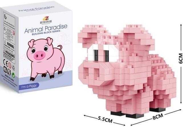 Oto uroczy zestaw klocków JZ z serii Animal Paradise Building Block Series, idealny dla każdego miłośnika zwierząt i budowania. Zestaw I'm a Piggy pozwala na stworzenie sympatycznej, różowej świnki z charakterystycznymi dużymi oczami. Konstruowanie modelu z malutkich, precyzyjnych klocków to świetna zabawa, która wspiera rozwój koordynacji wzrokowo-ruchowej, cierpliwości i umiejętności rozwiązywania problemów u dzieci. Po złożeniu, świnka stanowi atrakcyjną ozdobę i element kolekcji. Złożony model ma kompaktowe wymiary: około 8 centymetrów długości, 5,5 centymetra szerokości oraz 6 centymetrów wysokości, co czyni go łatwym do postawienia na półce czy biurku. Produkt jest bezpieczny i opatrzony oznaczeniem CE. Zestaw klocków jest zapakowany w estetyczne pudełko z grafiką uroczej świnki, co czyni go idealnym pomysłem na prezent. Klocki są wyprodukowane w Chinach.