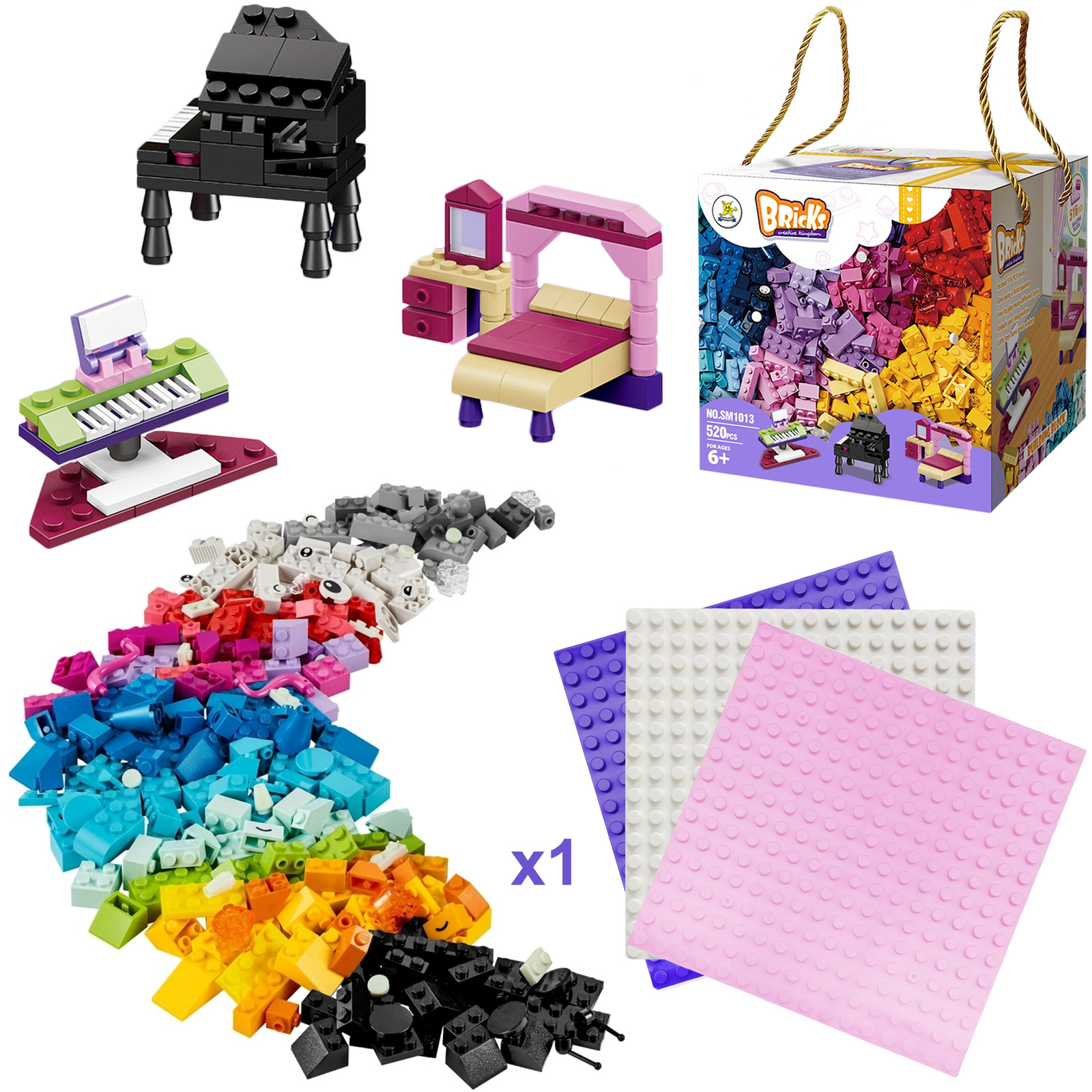 Zestaw Klocków Konstrukcyjnych "Brick" (520+ elementów) - Stwórz Własny Świat Miniatur! Przedstawiamy fantastyczny zestaw klocków konstrukcyjnych "Brick", który pozwoli Twojemu dziecku zbudować urocze miniaturowe meble i instrumenty muzyczne! Z ponad 520 elementami i trzema bazowymi płytkami, ten komplet to idealna propozycja dla małych architektów i projektantów wnętrz. Cechy produktu: Duży Zestaw Klocków: Opakowanie zawiera ponad 520 różnokolorowych elementów (wg oznaczenia "520+ pcs"), w tym klocki o różnych kształtach i rozmiarach, co zapewnia szerokie możliwości budowania. Bogata Paleta Kolorów: Klocki występują w szerokiej gamie żywych barw, ułożonych na zdjęciu w kształt tęczy, co inspiruje do tworzenia barwnych i wesołych konstrukcji. Trzy Płytki Bazowe: W zestawie znajdują się trzy płytki bazowe w różnych kolorach (fioletowy, biały i różowy), które stanowią stabilną podstawę dla budowli i otwierają nowe możliwości konstrukcyjne. Przykładowe Modele: Dołączone zdjęcia pokazują przykładowe, urocze konstrukcje, które można zbudować z klocków: o Miniaturowy fortepian: Elegancki czarny fortepian z klawiaturą. o Miniaturowy keyboard: Kolorowy keyboard na podstawce. o Miniaturowa sypialnia: Łóżko z baldachimem i toaletka z lustrem, w odcieniach różu i fioletu. To doskonała inspiracja do rozpoczęcia zabawy i tworzenia własnych scenek. Rozwój Umiejętności: Zabawa klockami doskonale rozwija kreatywność, wyobraźnię przestrzenną, zdolności manualne, koordynację wzrokowo-ruchową, a także umiejętność rozwiązywania problemów i cierpliwość. Wygodne Opakowanie: Klocki zapakowane są w praktyczne pudełko z uchwytem, co ułatwia przechowywanie i przenoszenie zestawu. Wiek: Produkt przeznaczony dla dzieci w wieku 6 lat i starszych (zgodnie z oznaczeniem "6+" na opakowaniu). Wielkość opakowania: 18x18x18 cm Klocki kompatybilne z innymi, popularnymi klockami!!! Idealny dla: Małych i większych konstruktorów, którzy uwielbiają budować. Rozwijania kreatywności i zdolności manualnych. Tworzenia własnych miniaturek mebli i instrumentów. Prezentu na urodziny, Dzień Dziecka czy inne okazje. Podaruj swojemu dziecku nieograniczone możliwości tworzenia z naszym zestawem klocków "Brick" i obserwuj, jak rozwija swoje talenty konstruktorskie i artystyczne!