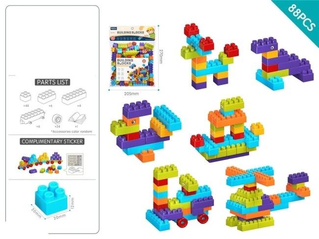 Kolorowe klocki konstrukcyjne - 88 elementów czystej radości tworzenia! Odkryj świat nieograniczonej kreatywności z naszym zestawem 88 kolorowych klocków konstrukcyjnych! Ten bogaty zestaw to doskonała propozycja dla dzieci, które uwielbiają budować, tworzyć i wymyślać własne konstrukcje. Dzięki różnorodności kształtów i rozmiarów klocków, możliwości są niemal nieograniczone. Zestaw zawiera klocki w żywych i atrakcyjnych kolorach, które przyciągają wzrok i pobudzają wyobraźnię. Twoje dziecko może z łatwością tworzyć urocze zwierzątka, fantastyczne pojazdy, unikalne budowle, a nawet wymyślać własne, niepowtarzalne projekty. Budowanie z klocków to nie tylko świetna zabawa, ale również doskonały sposób na rozwijanie zdolności manualnych, koordynacji wzrokowo-ruchowej oraz logicznego myślenia. Dodatkowo, do zestawu dołączone są komplementarne naklejki, które pozwolą na jeszcze większą personalizację i urozmaicenie tworzonych konstrukcji. Naklejki dodadzą charakteru i detali każdej budowli, czyniąc zabawę jeszcze bardziej angażującą. Klocki wykonane są z bezpiecznych i trwałych materiałów, co gwarantuje długotrwałą zabawę. Ich optymalny rozmiar (przykładowy klocek 2x2 ma wymiary 20mm x 20mm x 17mm) jest idealny dla małych rączek, ułatwiając chwytanie i łączenie. Ten 88-elementowy zestaw to doskonały pomysł na prezent, który zapewni wiele godzin kreatywnej i rozwijającej zabawy. Pozwól swojemu dziecku odkryć radość tworzenia i budowania z naszymi kolorowymi klockami konstrukcyjnymi!