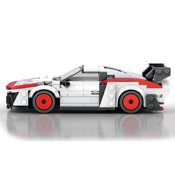Wejdź na tor z klasą - Klocki REOBRIX 792 Samochód wyścigowy Porsche 935 (346 elementów) - bez licencji. Poczuj emocje motorsportu i zbuduj legendę wyścigów dzięki zestawowi REOBRIX Porsche 935 ! Ten wyjątkowy model składający się z 346 elementów oddaje ducha kultowego samochodu wyścigowego z lat 70., znanego ze swojego charakterystycznego designu i niesamowitych osiągów. To idealny zestaw dla dorosłych fanów klocków oraz miłośników klasycznej motoryzacji - kompaktowy, elegancki i gotowy do ekspozycji. Model w skali 1:24 łączy realizm z satysfakcją budowy, prezentując się znakomicie zarówno na biurku, jak i w kolekcjonerskiej gablocie. Dlaczego warto wybrać ten zestaw? Projekt inspirowany kultowym samochodem wyścigowym Porsche 935 (bez licencji) - idealne odwzorowanie klasyki torów wyścigowych, charakterystyczne, aerodynamiczne linie i niska sylwetka nawiązują do kultowych aut z torów Le Mans. 346 elementów - zrównoważony zestaw zapewniający przyjemność budowania i imponujący efekt końcowy. Skala 1:24 - kompaktowy model, idealny do ekspozycji. Realistyczna konstrukcja aerodynamiczna - szerokie nadkola, tylne skrzydło i detale karoserii tworzą dynamiczny wygląd pojazdu, w pełni oddają sportowy charakter oryginału. Symulowane wnętrze kabiny - z kierownicą, siedzeniem i deską rozdzielczą, które nadają modelowi autentycznego charakteru. Ruchome koła - umożliwiają płynne toczenie i zabawę, a także realistyczne ustawienie w ekspozycji. Sportowa kolorystyka - kontrastowe barwy i pasy wyścigowe oddają ducha klasycznego motorsportu. Naklejki dekoracyjne - podkreślają sportowy charakter i dodają detali znanych z aut wyścigowych. Stabilna konstrukcja - precyzyjnie spasowane elementy zapewniają trwałość i solidność modelu. "Desktop-ready" wygląd - idealny do ustawienia na półce, biurku lub w witrynie kolekcjonerskiej. Kompaktowy format - świetnie komponuje się z innymi modelami z serii REOBRIX. Zestaw dla pasjonatów prędkości i designu - łączy sportowe emocje z elegancją i dbałością o szczegóły. Świetny prezent - dla fanów motoryzacji, klocków i klasycznych samochodów sportowych. REOBRIX 935 (346 elementów) to połączenie klasyki, elegancji i sportowej energii. Zbuduj własny samochód wyścigowy i przenieś się na legendarny tor pełen emocji i historii!