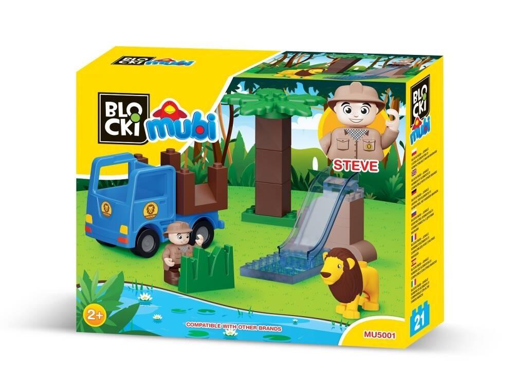 Zestaw BLOCKI MUBI Wielkie Przygody - Dżungla MU5001 to komplet klocków składający się z 21 elementów. W zestawie maluch znajdzie samochód idealny na safari, palmę, zjeżdżalnię, figurkę przyrodnika i podróżnika - Steve'a oraz wyjątkową figurkę lwa - króla dżungli! Zestaw MUBI Dżungla MU5001 został stworzony z myślą o dzieciach od 2 roku życia - wielkość elementów kompletu jest odpowiednia dla małych dziecięcych rączek, zapewniając łatwość układania i bezpieczeństwo zabawy.