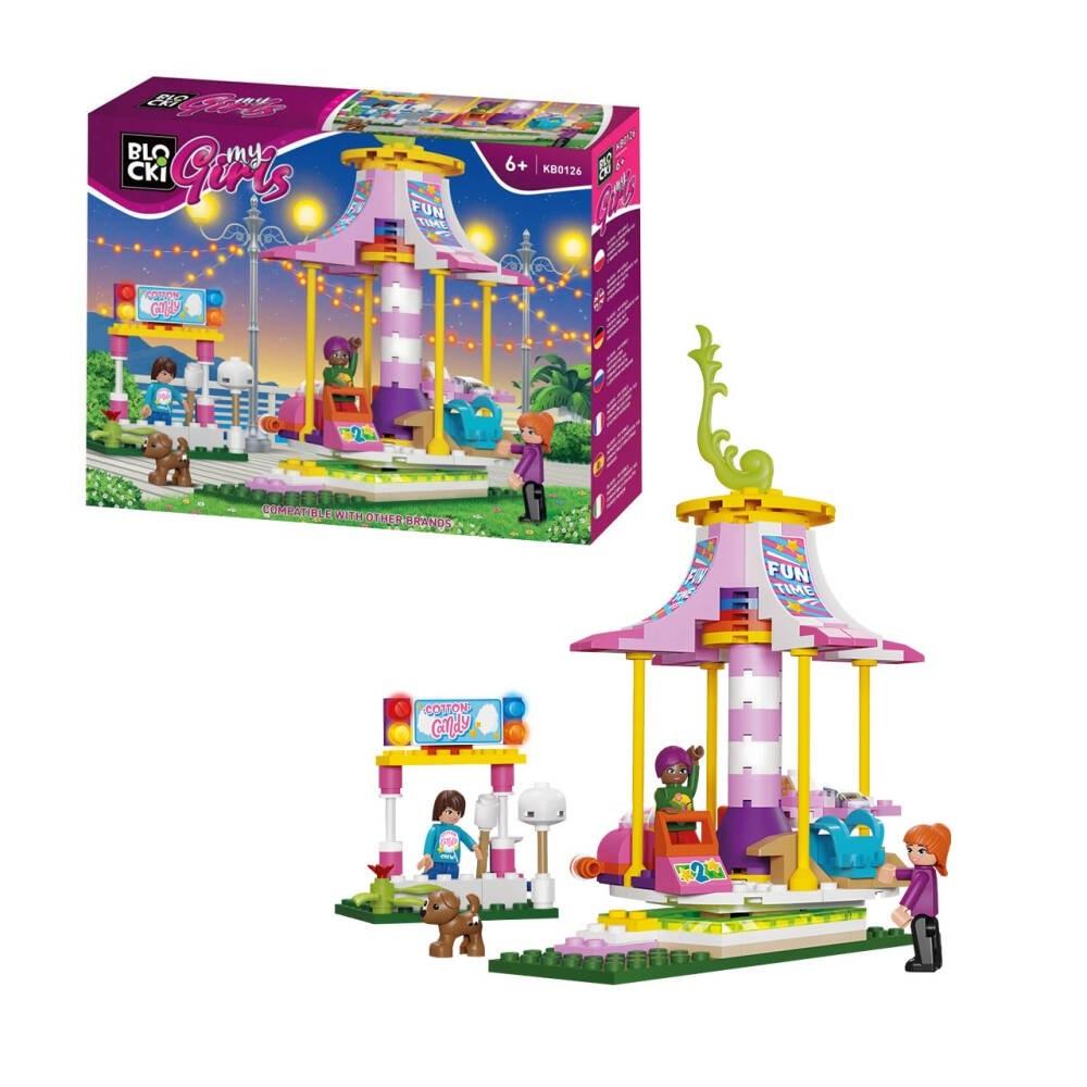 Komplet klocków dla dziewczynek BLOCKI MyGirls Karuzela KB0126 można połączyć np. z zestawami MyGirls Spacer po parku KB0114 i KB0115 Letni piknik by stworzyć uroczy lunapark w centrum klockowego miasta.
