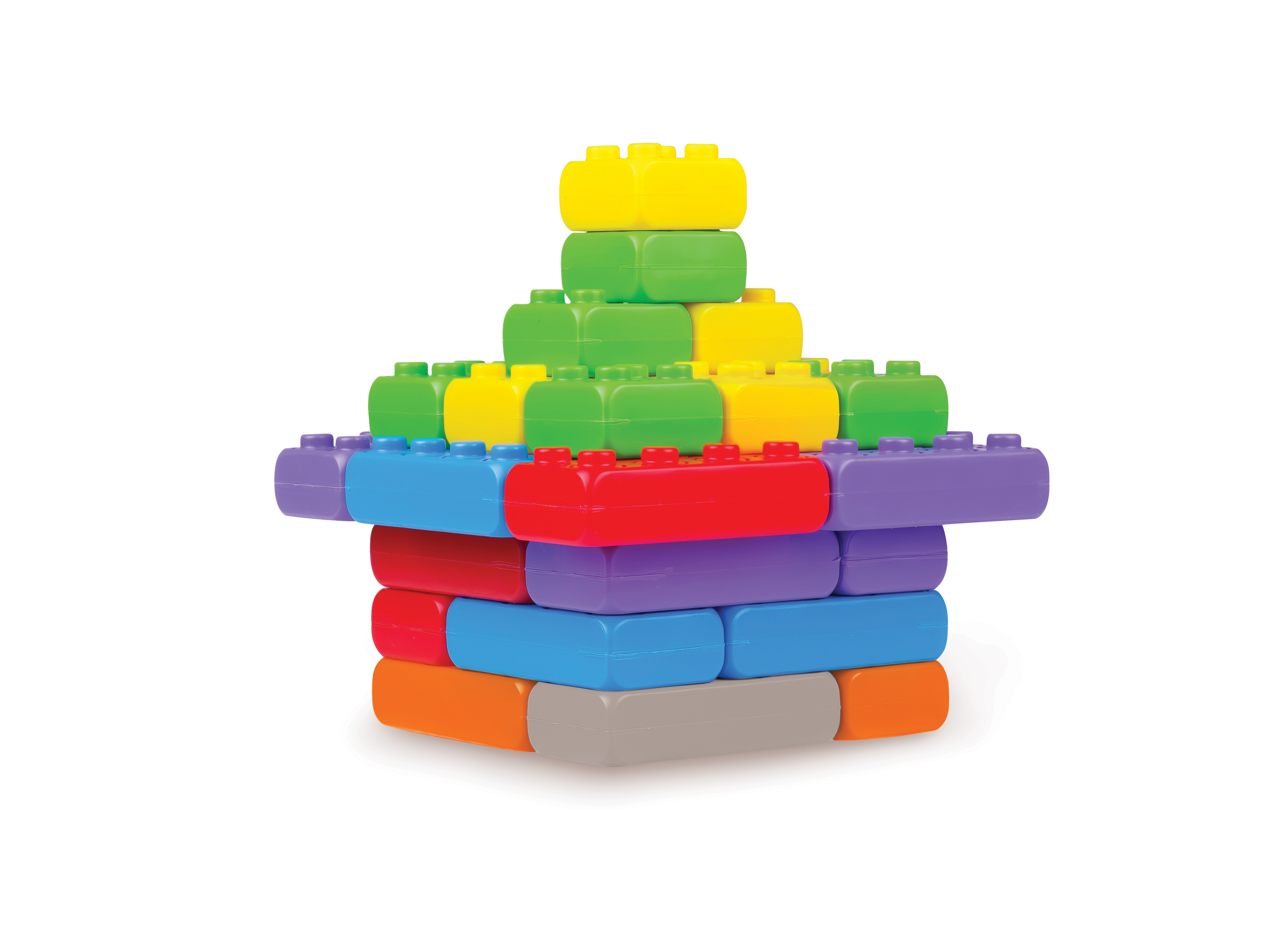 Zestaw klocków budowlanych "CEGŁY JUNIOR" składający się z 30 elementów.