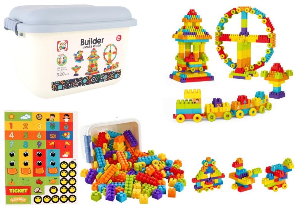 Zestaw klocków budowlanych Builder Blocks World to prawdziwa gratka dla małych konstruktorów i odkrywców! Aż 320 kolorowych elementów umieszczonych w solidnej skrzyni z pokrywą daje dzieciom ogromne możliwości tworzenia i eksperymentowania. Dzięki różnorodnym kształtom i barwom dziecko może budować wszystko, co podpowie mu wyobraźniaod pociągów i samochodów, przez karuzele i diabelskie młyny, aż po imponujące wieże czy własne fantazyjne budowle.