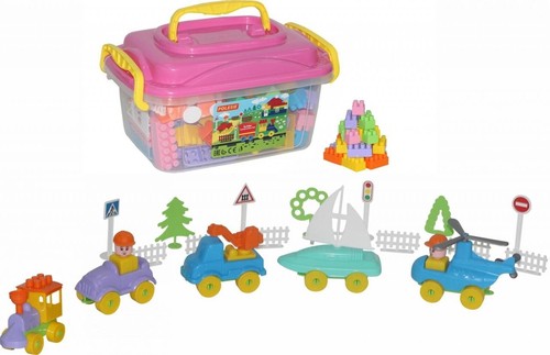Klocki Budowniczy - 138 elementów w plastikowym kontenerze. Dla dzieci w wieku od 3 lat.