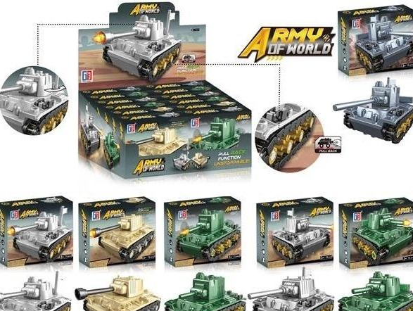 ARMU OF WORLD - KLOCKI CZOŁGI - Opakowanie Zbiorcze (12 Zestawów) Przenieś się w świat epickich bitew z zestawem klocków czołgów ARMU OF WORLD! To idealny produkt dla każdego małego stratega i fana militariów. W opakowaniu zbiorczym znajdziesz aż 12 oddzielnych zestawów, a każdy z nich zawiera mini czołg do samodzielnego złożenia. Czołgi występują w trzech wariantach kolorystycznych: klasycznym srebrnym, eleganckim złotym i bojowym zielonym, co zapewnia różnorodność i możliwość kolekcjonowania. Każdy złożony czołg posiada innowacyjną funkcję pull-back, dzięki której wystarczy go pociągnąć do tyłu, aby ruszył z impetem do przodu, zapewniając dynamiczną i ekscytującą zabawę. Klocki są łatwe w montażu, co rozwija zdolności manualne i kreatywność dziecka. Ten zestaw to doskonała propozycja na prezent, idealna do sklepów z zabawkami, dla przedszkoli czy na eventy. Oferujemy atrakcyjną cenę za 1 zestaw, co czyni cały pakiet niezwykle opłacalnym. Przygotuj się na niezapomniane godziny strategicznej zabawy z ARMU OF WORLD! Cena dotyczy 1 zestawu.
