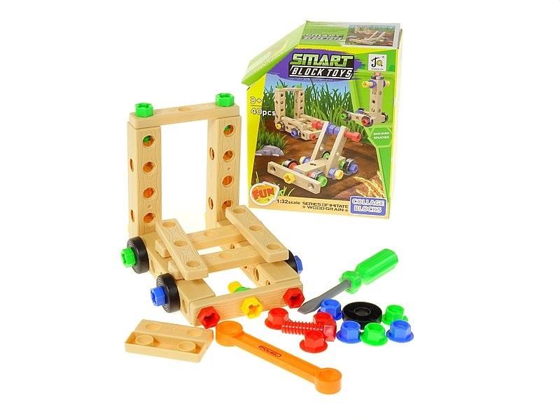 Zestaw 40 klocków do skręcania, imitacja drewna.