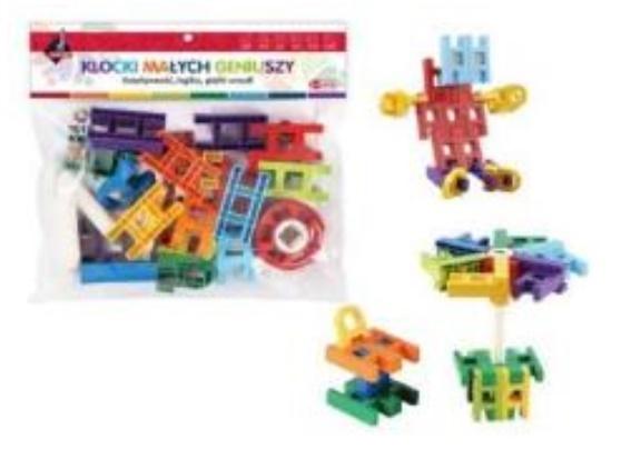 40 elementy w różnych kolorach pozwala stworzyć fantastyczne, przestrzenne figury, zaczynając od tych prostych takich jak krzesło poprzez nieco trudniejszego psa lub helikopter.