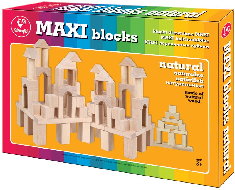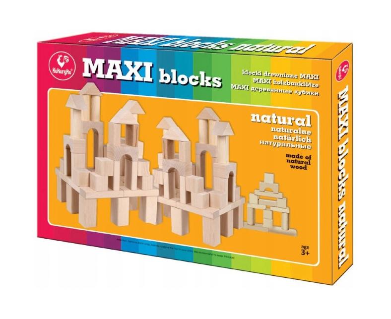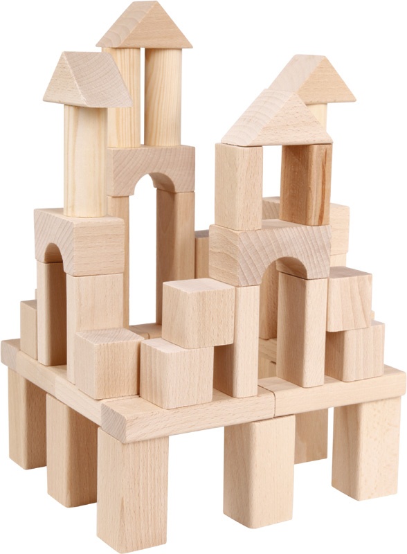 Drewniane klocki ekologiczne w różnych kształtach. Naturalne klocki z drewna, bez farb i innych środków konserwujących. Ilość elementów: 53 Wiek: 3+