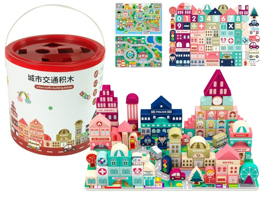 Drewniane Klocki Miasto Układanka 100 Elementów