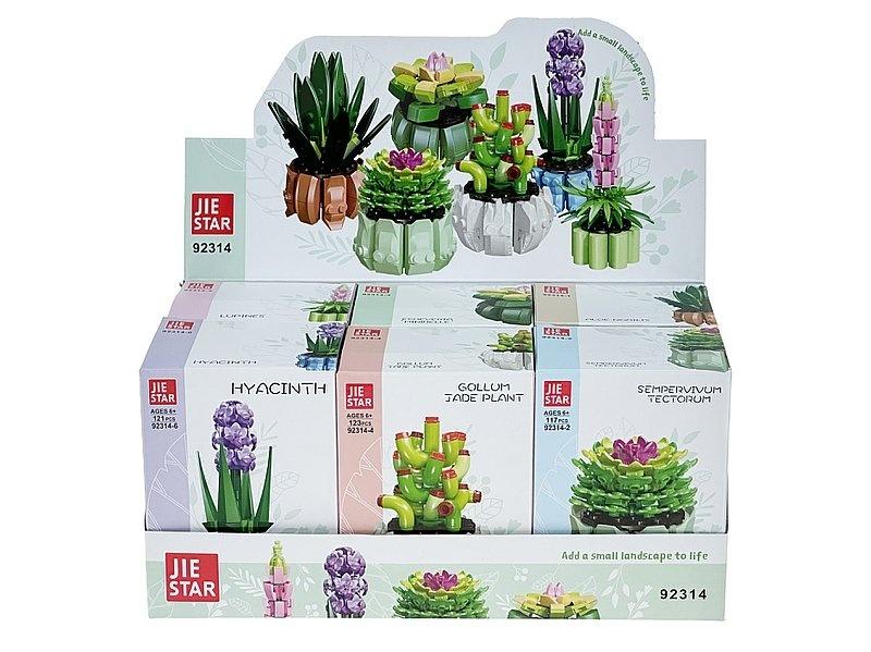 zestaw klocków - kaktus w doniczce, mix wzorów, od 120 do 136 elem. w zestawie, display 6szt, 15x11x9cm Box; 34x18,7x15,4cm, Box