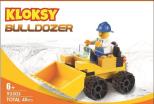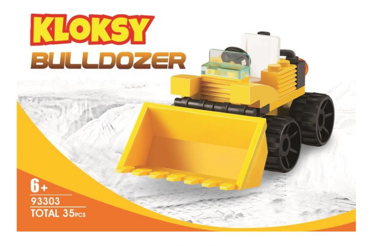 Klocki KLOKSY - Maszyny budowlane - buldożer, 45 elementów. Zestaw pakowany w display 12 szt. wraz z innymi rodzajami maszyn budowlanych (6 rodzajów po dwie sztuki).