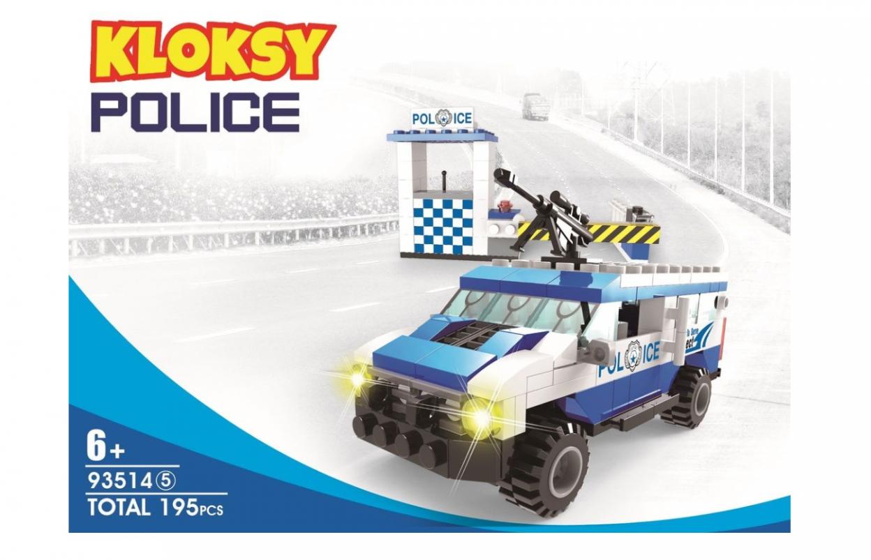 Klocki KLOKSY - Seria policja - wóz szturmowy, 205 elementów. Zestaw pakowany w display 6 szt. wraz z innymi rodzajami pojazdów policyjnych..