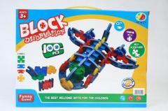 Klocki konstrukcyjne, plastikowe. W zestawie 100 elementów, kolorowych klocków w czterech różnych kształtach