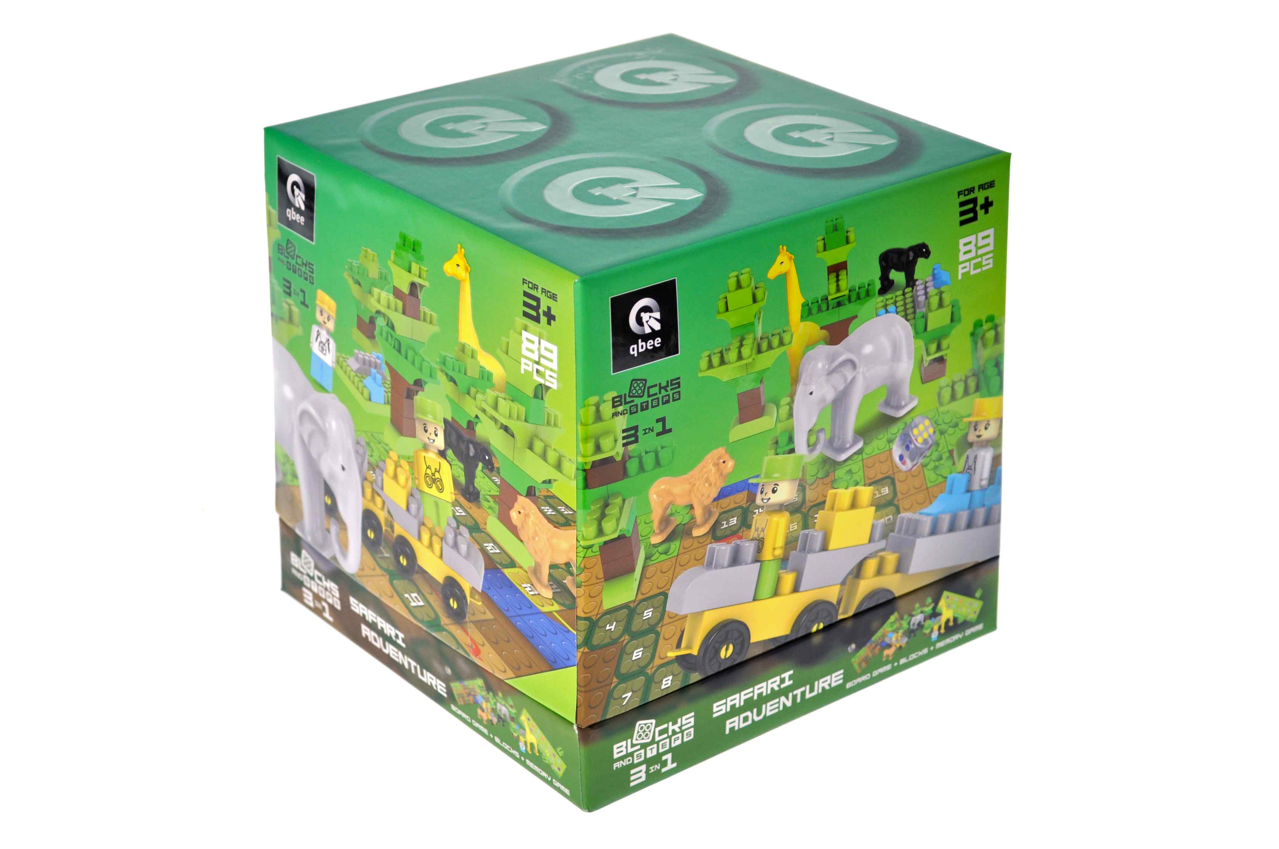 Konstruktor Block&Steps: Przygoda na Safari + gra planszowa i gra memory 3 w 1, 89 elementów QB300-006 qbee