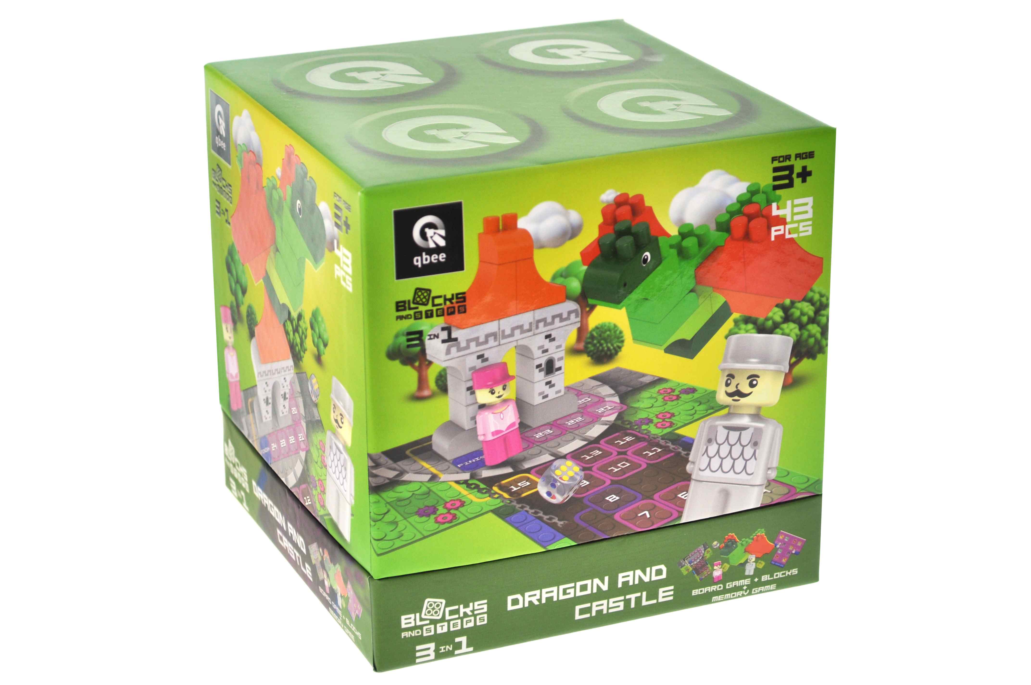 Konstruktor Block&Steps: Smok i Zamek + gra planszowa i gra memory 3 w 1, 43 elementy QB300-106 qbee