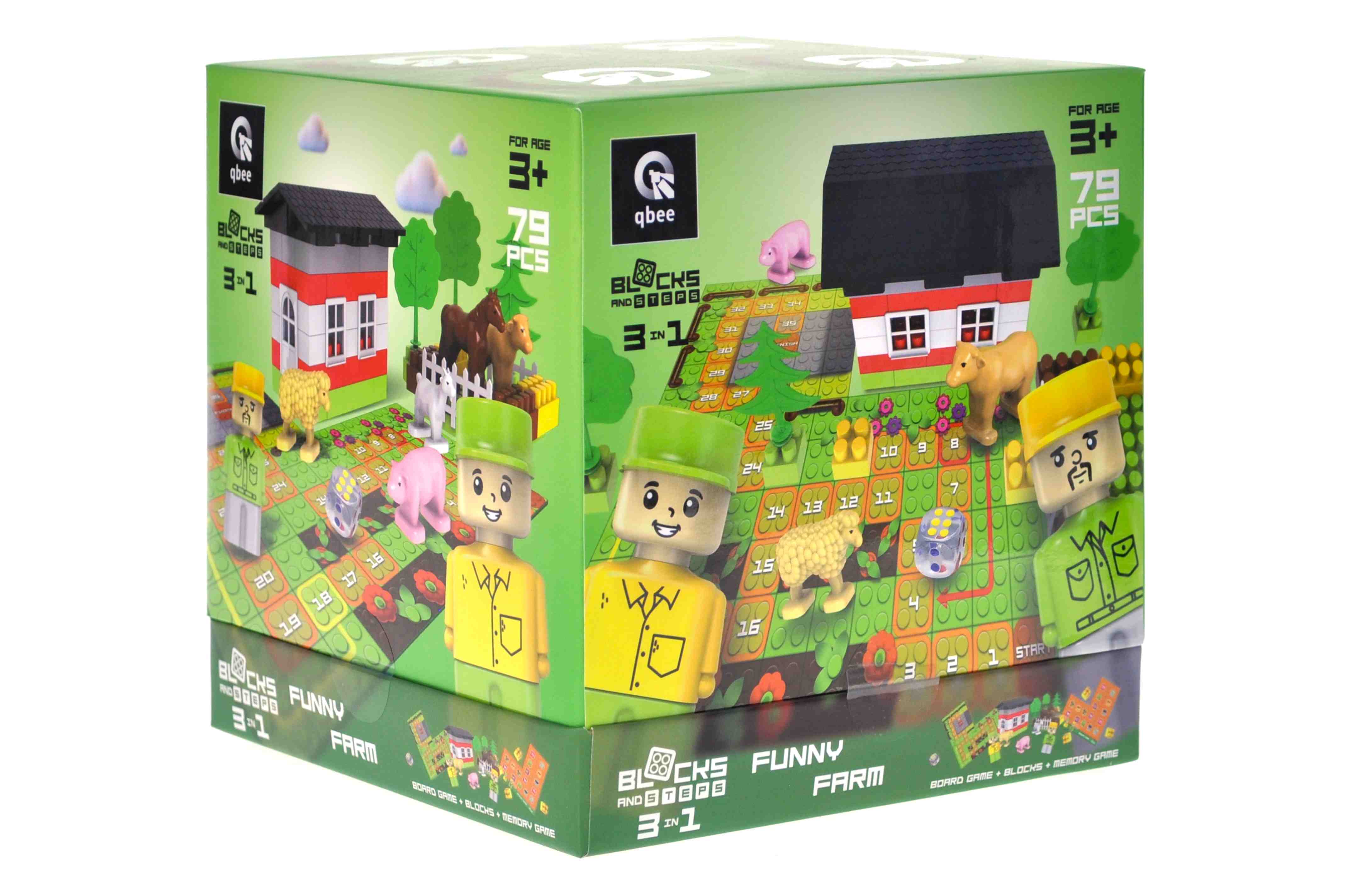 Konstruktor Block&Steps: Wesoła Farma + gra planszowa i gra memory 3 w 1, 79 elementów QB300-005 qbee