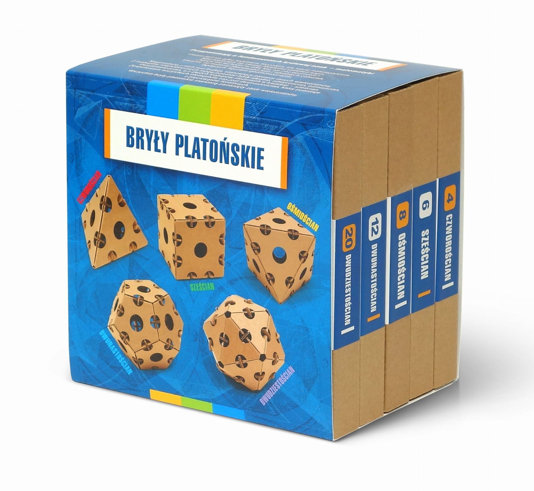 Klocki konstrukcyjne. Bryły platońskie. Zestaw elementów tekturowych do samodzielnego złożenia.