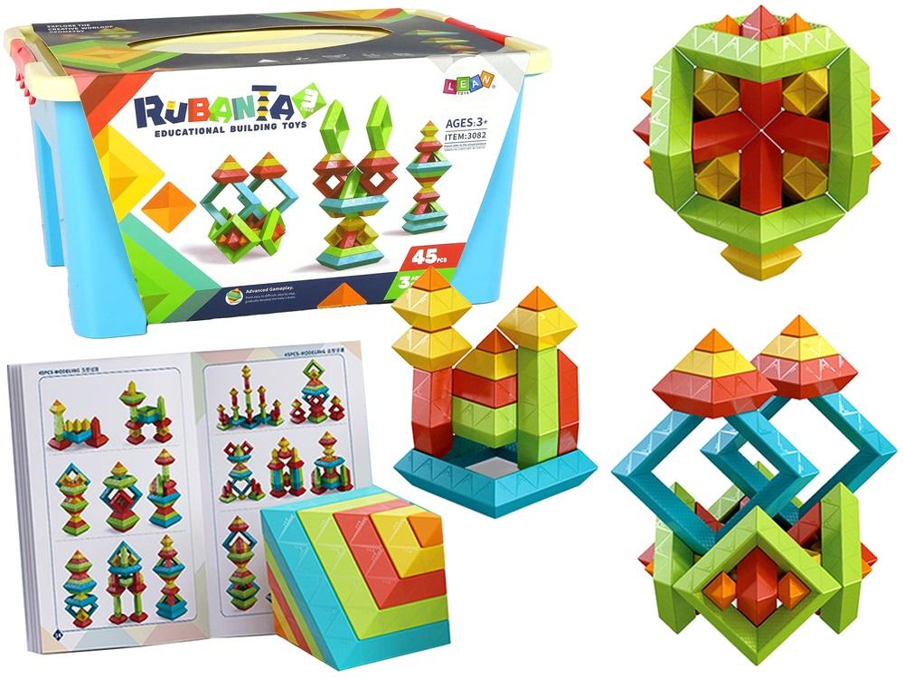 Zestaw Klocki Konstrukcyjne Figury Rubantao 45 el. Każde dziecko uwielbia tworzyć różnego rodzaju kształty i figury. Ten zestaw jest idealny właśnie do tego! Zabawka ta z pewnością uczy i bawi jednocześnie. Twoje dziecko będzie miało możliwości nauki kreatywności i z na pewno poprawi swoje zdolności manualne. Zestaw klocków poprawi koncentrację, logiczne myślenie oraz zdolności organizacji Twojego dziecka. Zestaw zawiera 45 sztuk klocków. Cały produkt został zapakowany w bardzo gustowne pudełko, które nadaje się do podarowania zabawki jako prezent na różne okazje. Dodatkowo do zestawu zostały dołączone 4 sztuki kółek, które po włożeniu umożliwiają łatwiejsze przenoszenie opakowania z zestawem klocków. Zestaw zawiera: - 15 sztuk klocków w kolorze pomarańczowym, - 12 sztuk klocków w kolorze żółtym, - 9 sztuk klocków w kolorze czerwonym, - 6 sztuk klocków w kolorze zielonym, - 3 sztuki klocków w kolorze niebieskim, - instrukcja. Wymiary opakowania: 34 cm x 24 cm x 18 cm Prosimy o doliczenie około 1- 2 cm na opakowanie. Zabawka zgodna z normą EN71 i certyfikatem CE. Przeznaczona dla dzieci w wieku 3+.