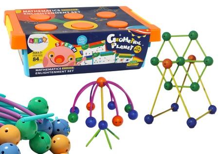 Klocki Konstrukcyjne Geometric Planet 84 el. Klocki konstrukcyjne Geometric Planet to zestaw, który zapewni Twojemu dziecku niezapomnianą zabawę i rozwój. Zestaw zawiera 30 kulek konstrukcyjnych w trzech kolorach ( zielony, pomarańczowy, niebieski ) oraz 54 patyczki do łączenia kulek w czterech różnych rozmiarach i w czterech kolorach ( fioletowy, zielony, niebieski, żółty) . Wraz z zestawem otrzymasz także naklejki za pomyślnie ukończone zadania, 16 tablic z różnymi zadaniami oraz zmywalny pisak do tablicy. Klocki Geometric Planet uczą samodzielnego, logicznego myślenia , rozwijają zdolności manualne i zachęcają do nauki poprzez zabawę. Dziecko będzie miało możliwość tworzenia różnych konstrukcji i odkrywania geometrycznych kształtów. Zestaw został wykonany z wysokiej jakości plastiku, który jest bezpieczny dla dzieci. Zamów już dziś klocki konstrukcyjne Geometric Planet i obdaruj swoje dziecko pasją do tworzenia, logicznym myśleniem i radością z nauki. Elementy zestawu: - 30 kulek konstrukcyjnych o średnicy 3 cm - 54 patyczki o długości od 7 do 17 cm - naklejki - pisak - tablice edukacyjne Wymiary opakowania: 31,5 cm x 20,5 cm. Zabawka zgodna z normą EN71 i certyfikatem CE. Przeznaczona dla dzieci w wieku 3+.