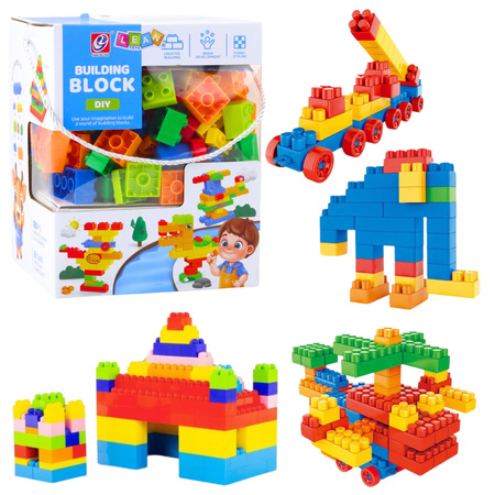 Zestaw klocków konstrukcyjnych 180 elementów to idealna zabawka dla dzieci, które uwielbiają tworzyć i rozwijać swoją kreatywność. Dzięki dużej ilości różnorodnych elementów w intensywnych kolorach - czerwonym, żółtym, niebieskim i zielonym - możliwe jest budowanie przeróżnych konstrukcji: domków, pojazdów, zwierząt czy fantazyjnych budowli.