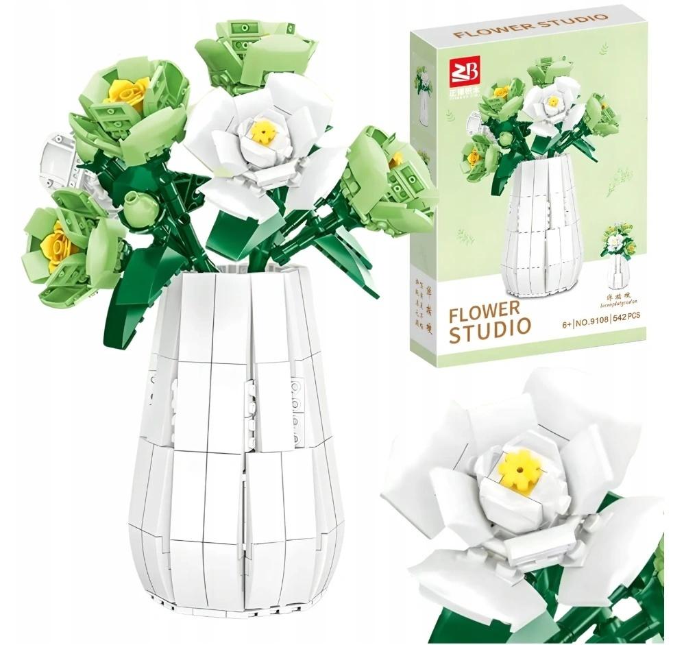 Zestaw zawiera kolorowe klocki w kształcie płatków i innych części rośliny, umożliwiając zbudowanie pięknych kwiatów. Unikalny zestaw z pewnością przyciągnie uwagę dzieci i zapewni mnóstwo godzin rozrywki. Wazon, w którym znajdują się kwiaty, również należy złożyć z klocków.