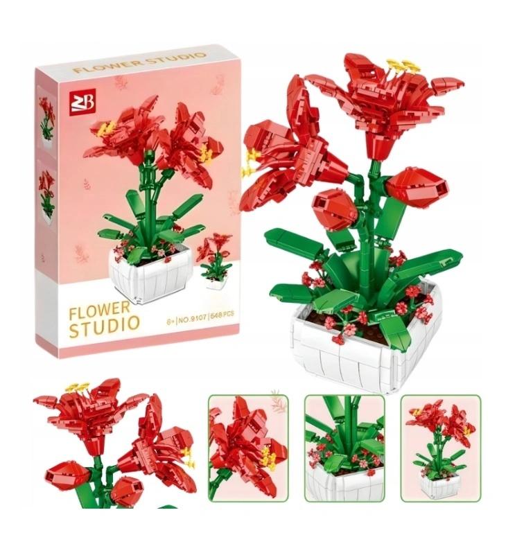 Zestaw zawiera kolorowe klocki w kształcie płatków i innych części rośliny, umożliwiając zbudowanie pięknych lilii. Unikalny zestaw z pewnością przyciągnie uwagę dzieci i zapewni mnóstwo godzin rozrywki. Doniczkę, w której znajdują się kwiaty, również należy złożyć z klocków.