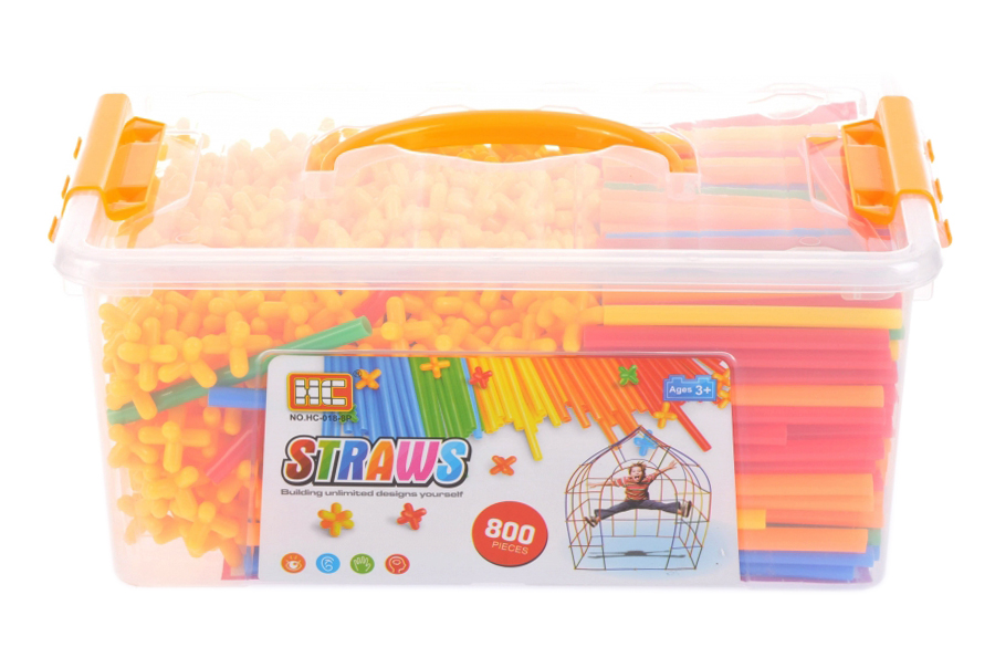 Zalety produktu rozwijanie zdolności manualnych i kreatywnego myślenia, rozwijanie pasji do majsterkowania, 800 kolorowych klocków w kształcie słomek do napojów.