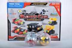Klocki konstrukcyjne w kuli. Plastikowe, małe elementy, z którch można wybudować samochód. Mix wzorów i kolorów.