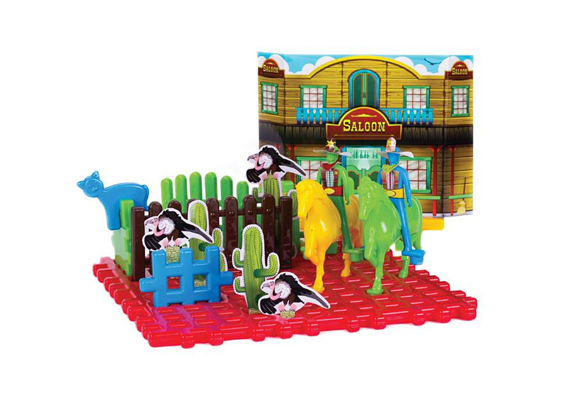 Zestaw klocków konstrukcyjnych DZIKI ZACHÓD, 15 elementów + podstawa.
