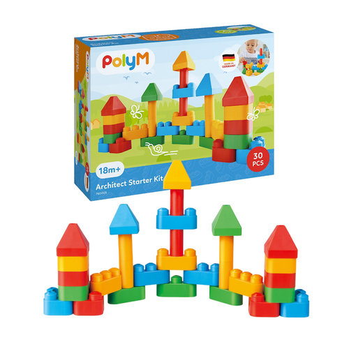 Klocki konstrukcyjne, Zestaw startowy małego architekta, 30 el., 18m+, PolyM