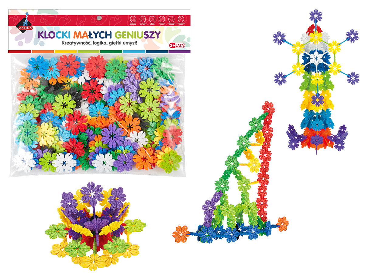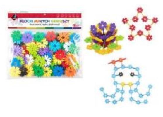 140 elementów w różnych kolorach pozwala stworzyć fantastyczne figury, zaczynając od tych prostych takich jak gwiazdka czy parasol poprzez nieco trudniejszą ośmiornicę lub samolot.