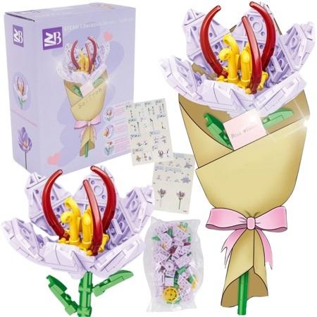 Dedykowane opakowanie: zestaw zapakowany jest w eleganckie opakowanie, na którym z tyłu można napisać dedykację dla bliskiej osoby. To sprawia, że klocki kwiatki są idealnym prezentem na każdą okazję.