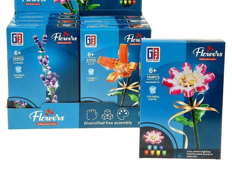 zestaw klocków ze światlem, kwiaty, od 70 do 121 części (12,7x18,5x4cm, Box),