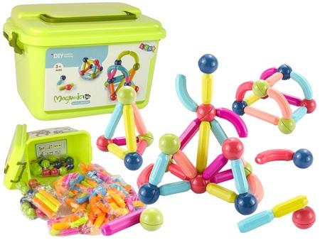 Klocki Magnetyczne Konstrukcyjne Edukacyjne Kuferek 145 Elementów Klocki magnetyczne to idealna zabawka edukacyjna dla każdego dziecka. Zabawa pozytywnie wpływa na rozwój małego dziecka. Nie tylko rozwinie zdolności manualne, ale pobudzi również wyobraźnie i kreatywność. Jakie zalety posiadają klocki magnetyczne? - wykonane z wytrzymałego, gładkiego plastiku - duża ilość klocków i szereg możliwych kombinacji - uczą cierpliwości i skupienia - uczą wspólnej zabawy, rozwiązywania problemów -mocne magnesy, utrzymują budowle - lekkie, których podnoszenie nie sprawi kłopotu maluchowi - wielokolorowe, barwne klocki stymulują zmysł wzroku malucha. Wszystkie klocki zapakowane są w pięknym, zielonym wiaderku. Ułatwi to ich przechowywanie i przenoszenie, eliminujące ryzyko zagubienia pojedynczych elementów. Zestaw składa się z 145 elementów, w tym kulek magnetycznych, zakrzywionych oraz prostych klocków. Sprawdź i zbuduj! Wymiary: klocka: około 8 cm średnica kulki: 3 cm Wymiary opakowania: 26 cm x 18 cm x 18 cm Wszystkie produkty zostały wykonane z wysokogatunkowego tworzywa, posiadają certyfikat CE, gwarantujący bezpieczeństwo dziecka i środowiska. Zabawka polecana jest dla maluszków, które osiągnęły 3 rok życia.
