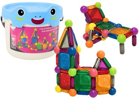 Klocki Magnetyczne Z Podświetleniem W Wiaderku 112 Elementów Zestaw klocków magnetycznych to niezwykle kreatywna i edukacyjna zabawka, która rozwija wyobraźnię i zdolności logicznego myślenia u dzieci. W skład zestawu wchodzi 112 elementów, umieszczonych w uroczym wiaderku ozdobionym motywem żabki na pokrywie, które może również pełnić rolę miejsca do tworzenia budowli. Klocki zostały zaprojektowane z myślą o łatwym i satysfakcjonującym budowaniu różnorodnych kształtów dzięki magnetycznym połączeniom. Każdy klocek posiada magnesy na swoich końcach, co umożliwia precyzyjne łączenie i tworzenie stabilnych struktur. Ich konstrukcja pozwala na łatwe łączenie w dowolny sposób oraz pod różnymi kątami, dzięki czemu dzieci mogą eksperymentować i tworzyć różnorodne konstrukcje. Dodatkowo do zestawu dołączona jest także lampka podświetlająca budowle, którą można sterować za pomocą dołączonego pilota. Dzięki temu dzieci mogą zmieniać kolory oświetlenia, co dodatkowo wzbogaca i urozmaica ich zabawę, zachęcając do dalszej eksploracji i tworzenia. Klocki magnetyczne to nie tylko zabawka, ale także narzędzie edukacyjne, które rozwija umiejętności przestrzenne i konstrukcyjne u dzieci w sposób interaktywny i atrakcyjny. Dzięki nim, każda chwila spędzona na budowaniu staje się nie tylko zabawą, ale także źródłem nauki i rozwoju. Lampka zasilana jest na baterie 2x 3V CR2032, które są elementem zestawu. Pilot zasilany jest na baterie 1x 3V CR2025, które są elementem zestawu. Wymiary wiaderka: 23cm x 23cm x 20,5cm Posiada certyfikat CE, ponadto jest zgodny z normą EN71. Przeznaczony dla dzieci powyżej 3 roku życia.-