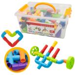 Fantastyczne klocki rozwijające wyobraźnię oraz postrzeganie przestrzenne dziecka. 112 elementy pozwalają stworzyć fantastyczne figury, zaczynając od tych prostych takich jak cyfry czy krzesło poprzez nieco trudniejszy wiatrak czy huśtawkę. Zabawka rozwija dziecięcą kreatywność, a intensywne kolory klocków zachęcają do tworzenia coraz to trudniejszych konstrukcji. Ograniczeniem jest tylko dziecięca wyobraźnia. Różnorodność form klocków pozwala połączyć je w wiele kombinacji, dzięki czemu można tworzyć mnóstwo ciekawych i kolorowych przedmiotów. Ilość elementów: 112